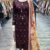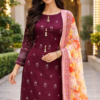 Afreen embroidered Dhanak suit plum