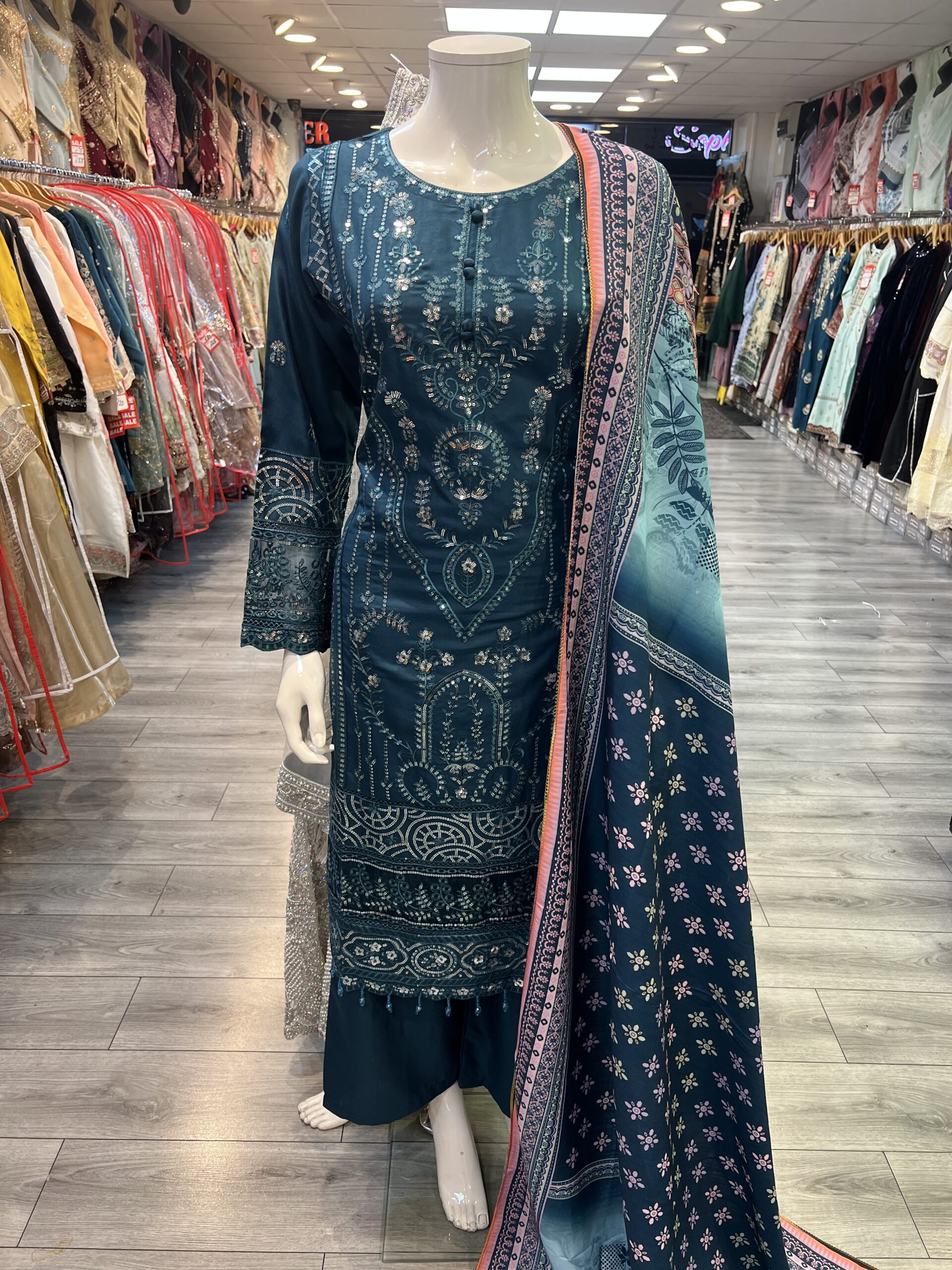 Esha embroidered dhanak suit Teal
