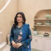 Maria B inspired linen outfit with embroidery and chicken work Teal