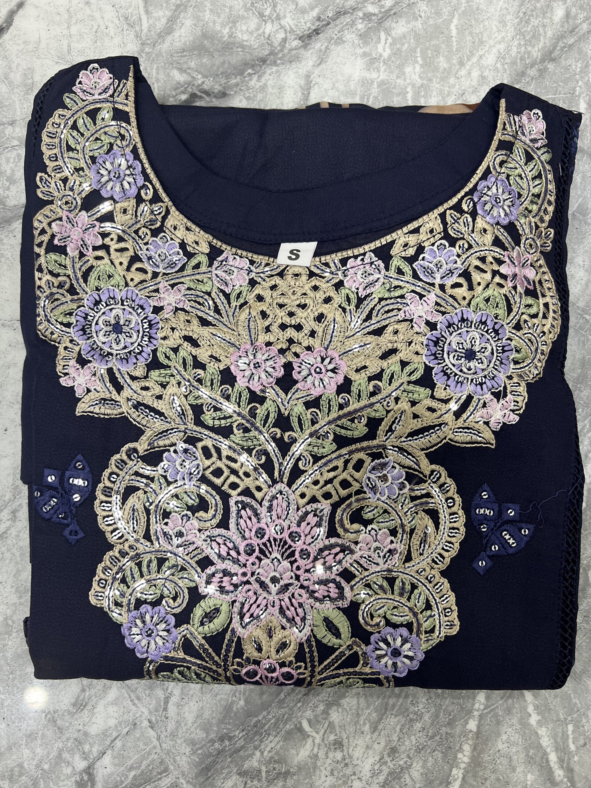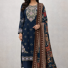 Sara embroidered dhanak suit Navy Blue