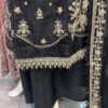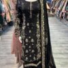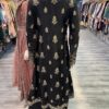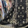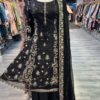 A-line chiffon dress with intricate embroidery, paired with silk palazzo trousers & an embroidered chiffon dupatta — made to turn heads 💫🖤