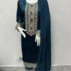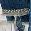 Our velvet embroidery suit includes matching trousers that perfectly complement the kameez, giving you a complete outfit that is both stylish and comfortable to wear. The chiffon dupatta adds an extra layer of sophistication to this already stunning ensemble.
