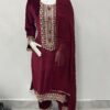 Our velvet embroidery suit includes matching trousers that perfectly complement the kameez, giving you a complete outfit that is both stylish and comfortable to wear. The chiffon dupatta adds an extra layer of sophistication to this already stunning ensemble.