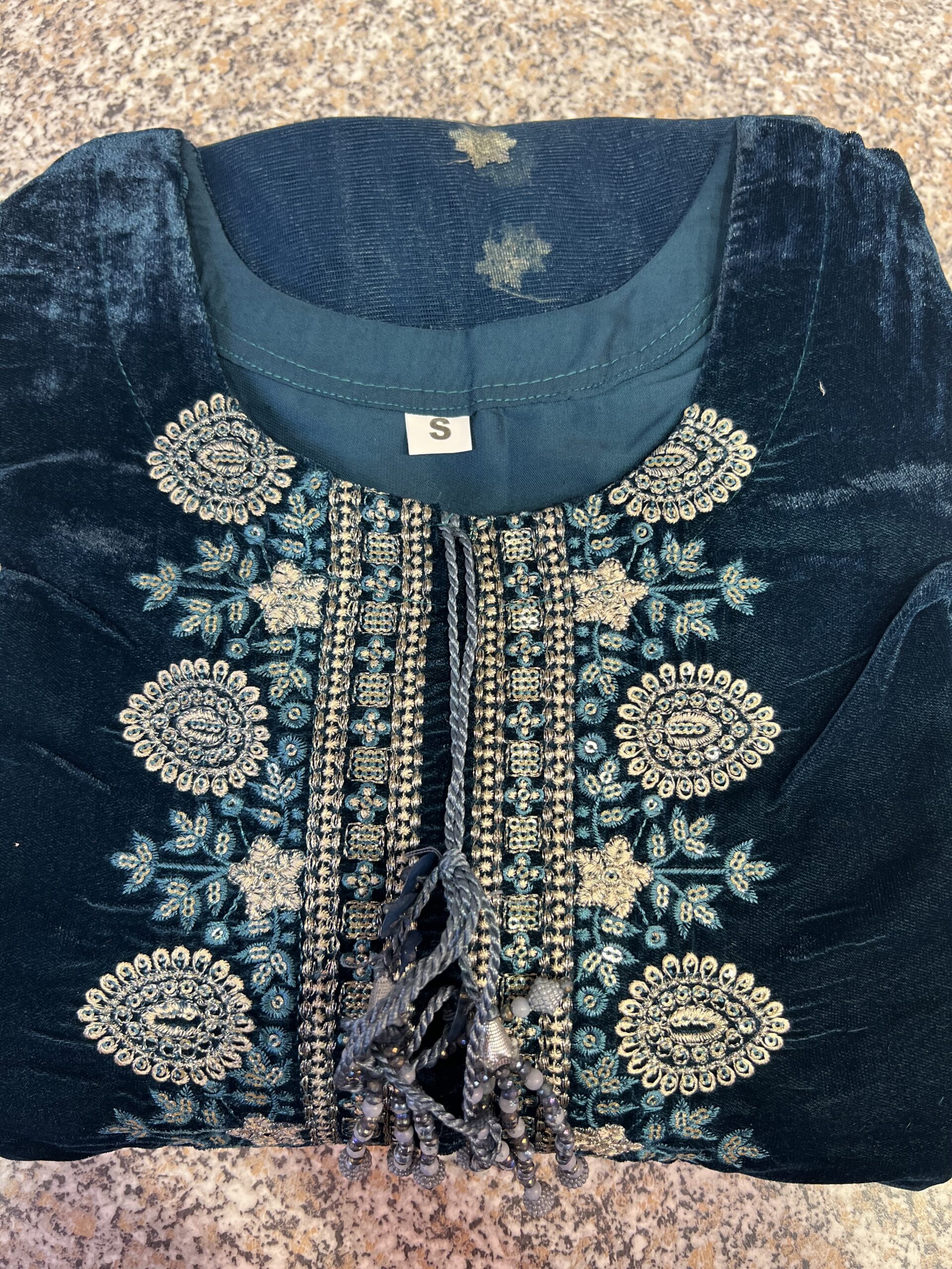 Zareen embroiderd micro velvet Teal